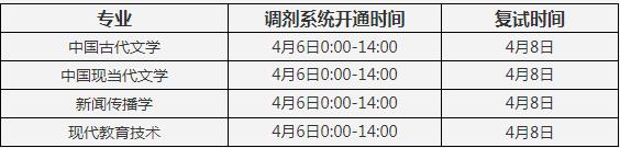 以下为我院相关专业调剂系统开通时间和调剂生复试时间。第一批调剂复试结果公布后仍有缺额的专业将继续进行第二次调剂,请考生关注调剂系统缺额情况和我院网站的相关信息,及时填报调剂系统。