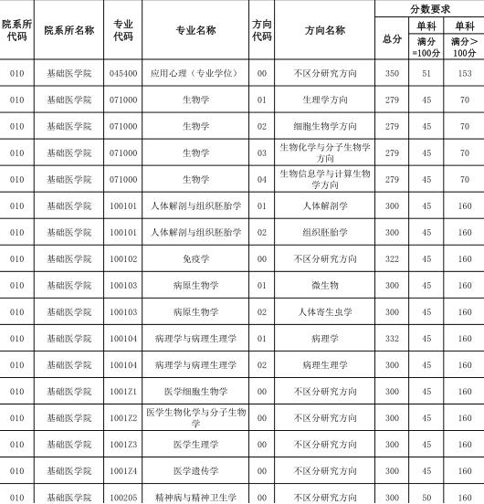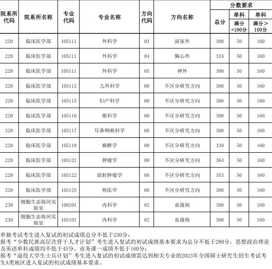 天津医科大学2023年全国硕士研究生招生考试考生进入复试的初试成绩基本要求