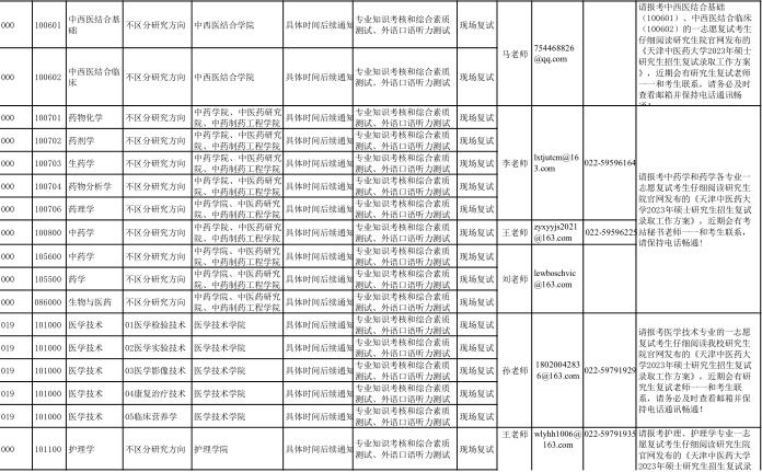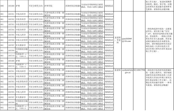 天津中医药大学2023年硕士研究生一志愿考生复试安排表、各学院附院联系方式以及温馨提示(二)