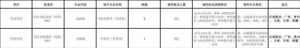 天津中医药大学2023年少数民族高层次骨干人才计划硕士研究生接收调剂专业一览表
