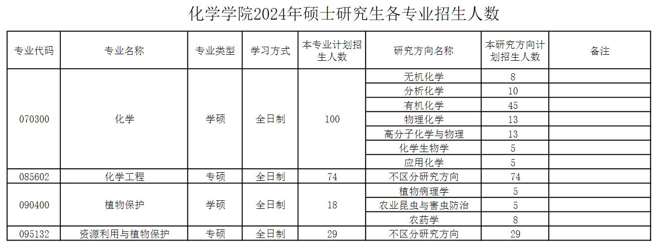 南开大学化学学院2024年硕士研究生各专业招生人数