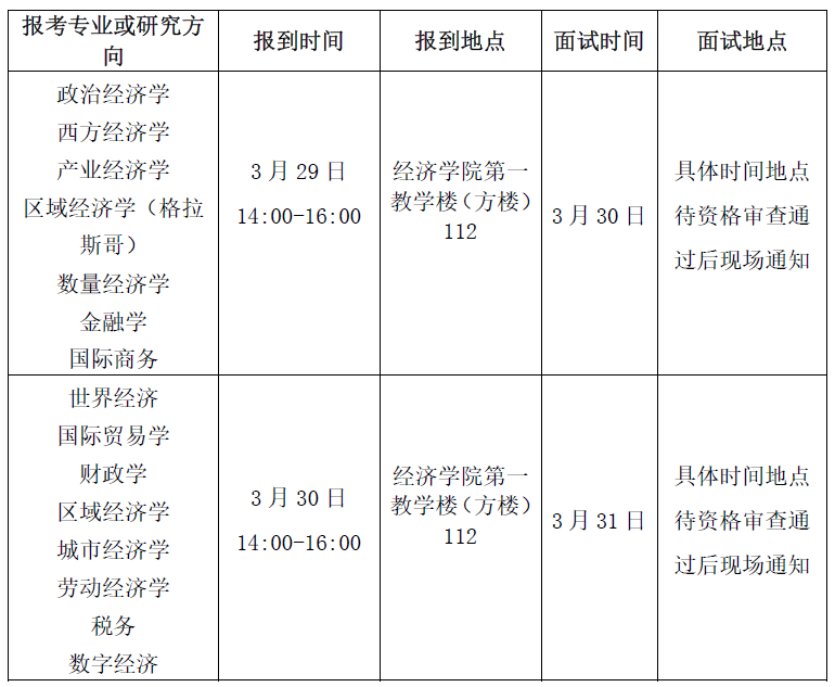 经济学院复试安排具体内容如下,如后续时间地点有变更,请以【报到】环节发放的通知为准(所有环节均在八里台校区进行):
